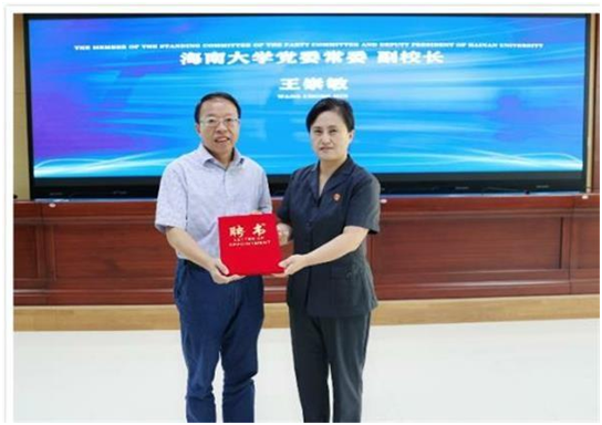 海南大学副董事长王崇敏教授接受聘书