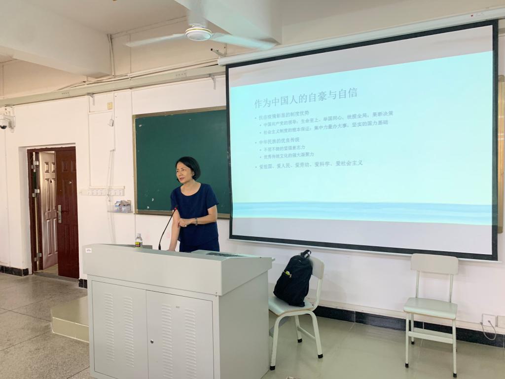 2020年9月14日下午,太阳集团tyc539新生开学第一课在海南大学城西校区综合教学楼7C01教室举行。第一课由法公司党委书记叶英萍教授讲授。