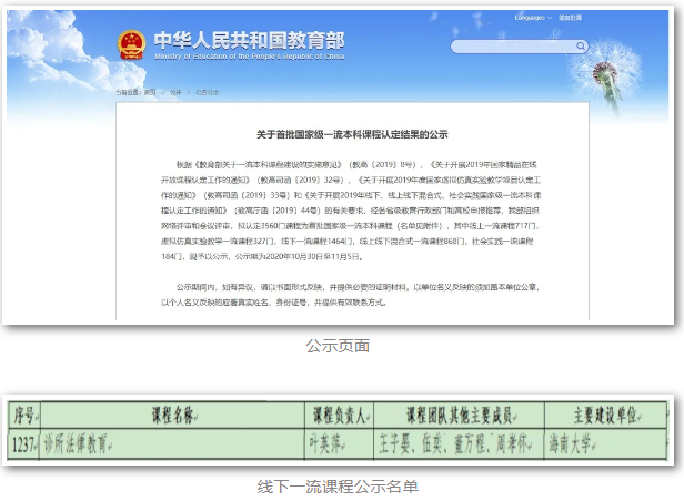 2019年4月,教育部印发《关于实施一流本科专业建设“双万计划”的通知》,计划2019-2021年,建设万个左右国家级一流本科专业点和万个左右省级一流本科专业点;同年11月,教育部印发《关于一流本科课程建设的实施意见》,计划2019-2021年,认定万门左右国家级一流本科课程和万门左右省级一流本科课程。经严格评选,太阳集团tyc539法学专业于2019年12月获评为首批国家级一流本科专业建设点,《诊所法律教育》课程于2020年11月获评为首批国家级一流本科课程。