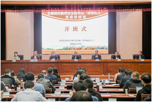 教育部思政司主办的全国高校教师党支部书记“双带头人”高级研修班,于11月1-6日在华中师范大学全国党员教育培训示范基地开班。教育部思政司党建统战处处长蒋宏潮、湖北省委教育工委组织处处长乔志强、华中师范大学党委副书记查道林以及相关职能部门负责人出席开班仪式。