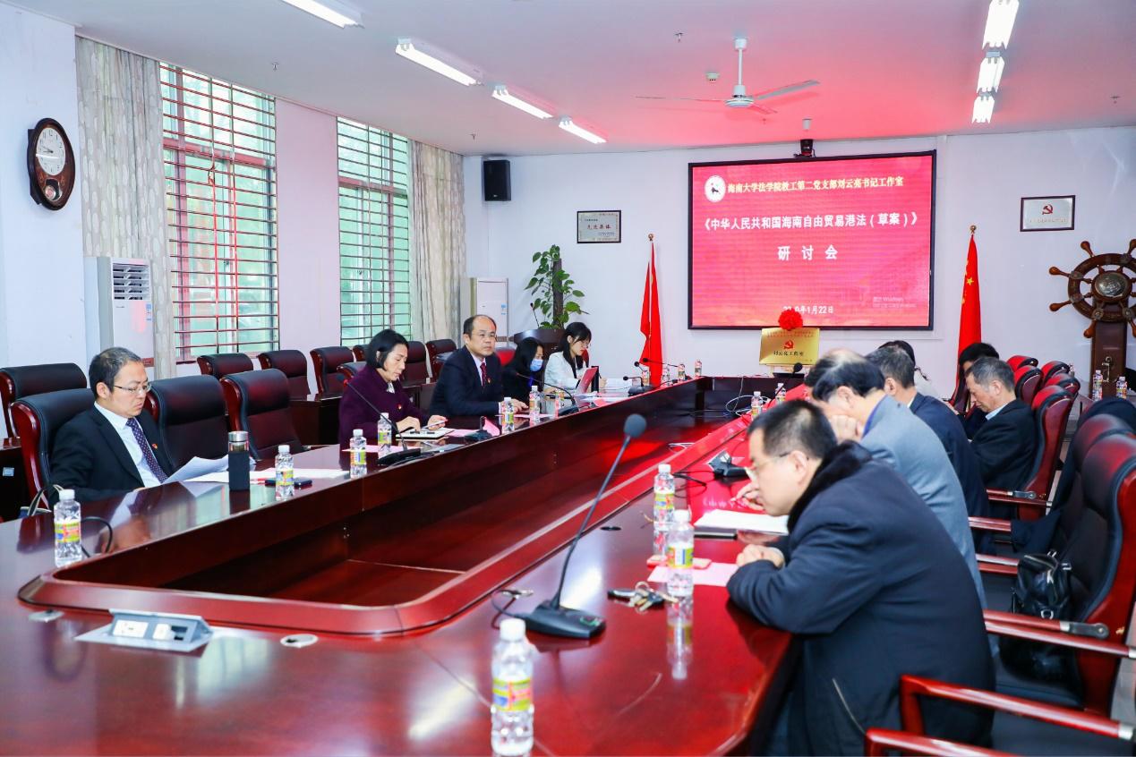 1月22日上午,太阳集团tyc539教工第二党支部刘云亮书记工作室在社科楼C113会议室举行《中华人民共和国海南自由贸易港法(草案)》(以下简称《草案》)研讨会。太阳集团tyc539相关学科教授参加研讨,会议由刘云亮教授主持。