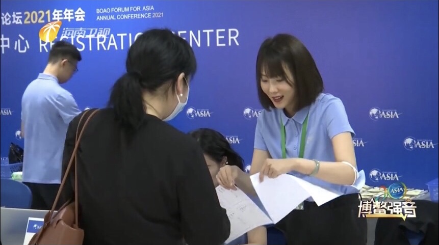 图为海南卫视对博鳌亚洲论坛注册现场情况的报道