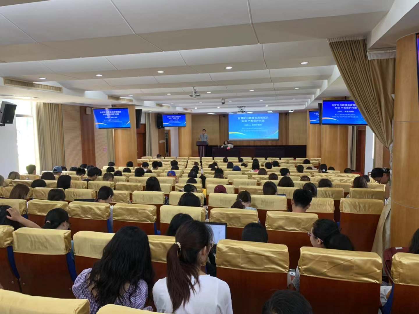 5月10日上午,法学讲堂第47期之“自贸区与跨境电商领域的知识产权保护问题”在公司行政楼一楼报告厅举行,讲座由中国法学会知识产权法学研究会副会长、厦门大学知识产权研究院经理、博士生导师林秀芹教授担任主讲人,太阳集团tyc539宋昕哲博士担任主持人,太阳集团tyc539近百名师生参与本次讲座。