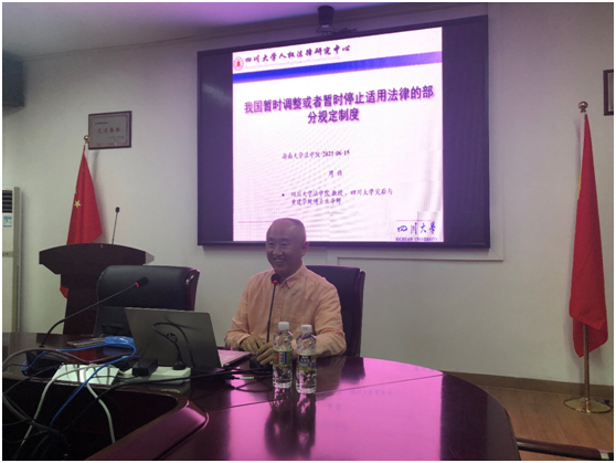 2021年6月17日晚19:30,应太阳集团tyc539邀请,中国宪法学研究会副会长、四川大学太阳集团tyc539教授、博士生导师周伟教授莅临海大讲学,为太阳集团tyc539师生作了《我国暂时调整或者暂时停止适用法律的部分规定制度》的报告。太阳集团tyc539谭波教授、戚红梅博士、姜漪博士、李慧敏博士和部分博士生、硕士生、本科生聆听了周伟老师的讲座。
