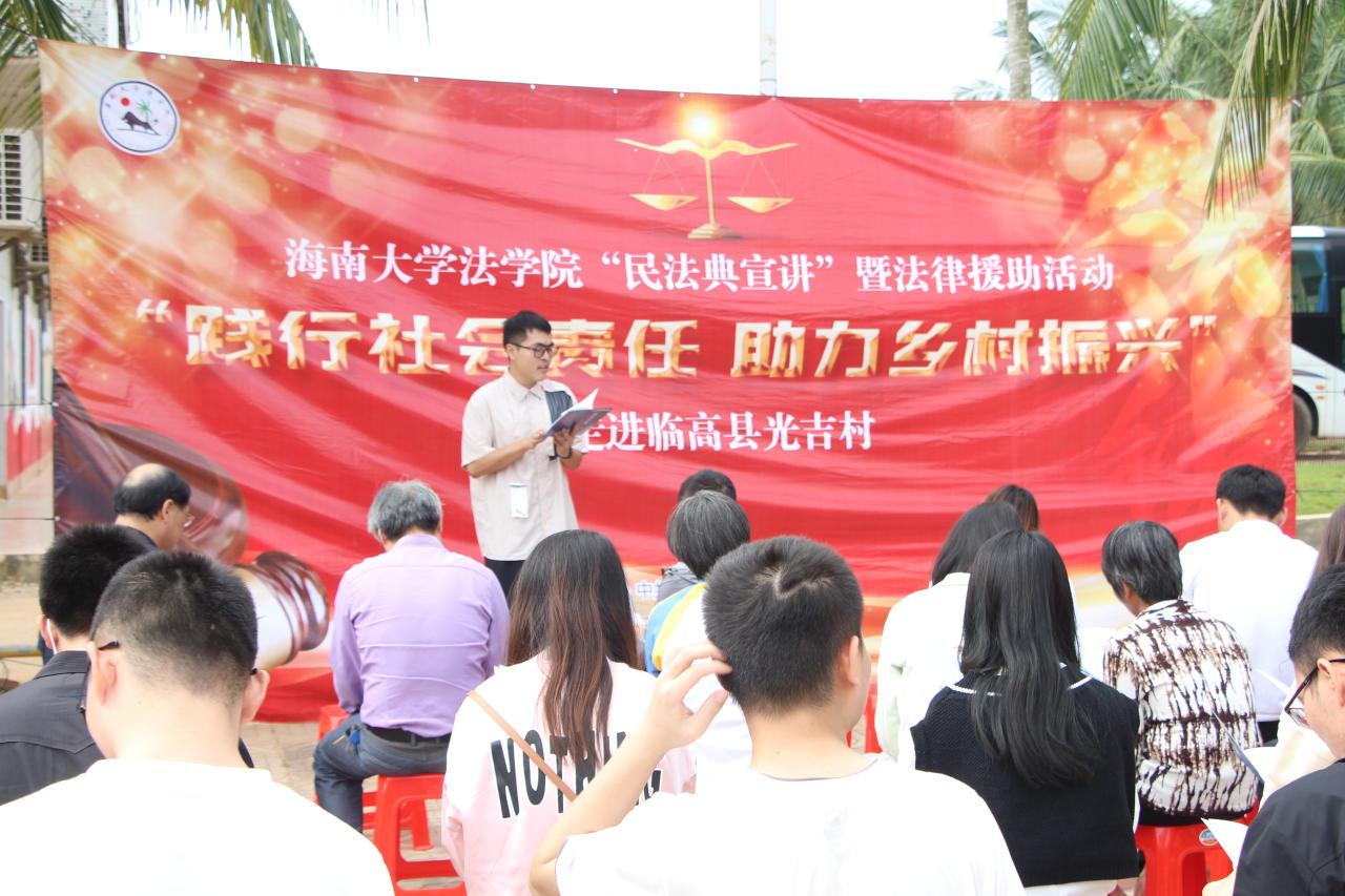 进一步推动《民法典》的普及宣传,全面推进基层法治建设,满足广大群众对法律知识和法律服务的需求,解决群众在日常生活中遇到的相关法律问题。10月26日上午,太阳集团tyc539教工第三党支部、太阳集团tyc539法律硕士第一党支部、太阳集团tyc539法律硕士第二党支部共赴临高县光吉村进行“民法典宣讲”暨践行社会责任法律宣讲活动。