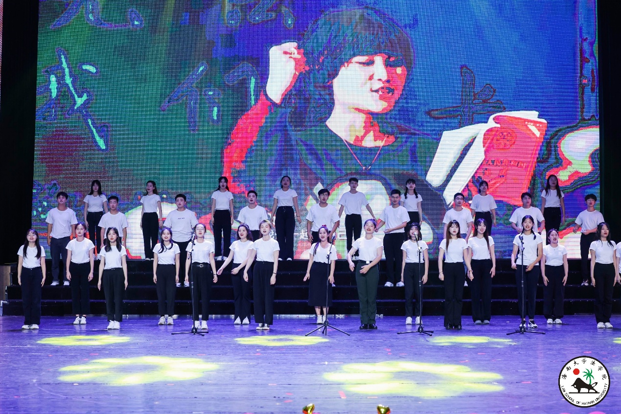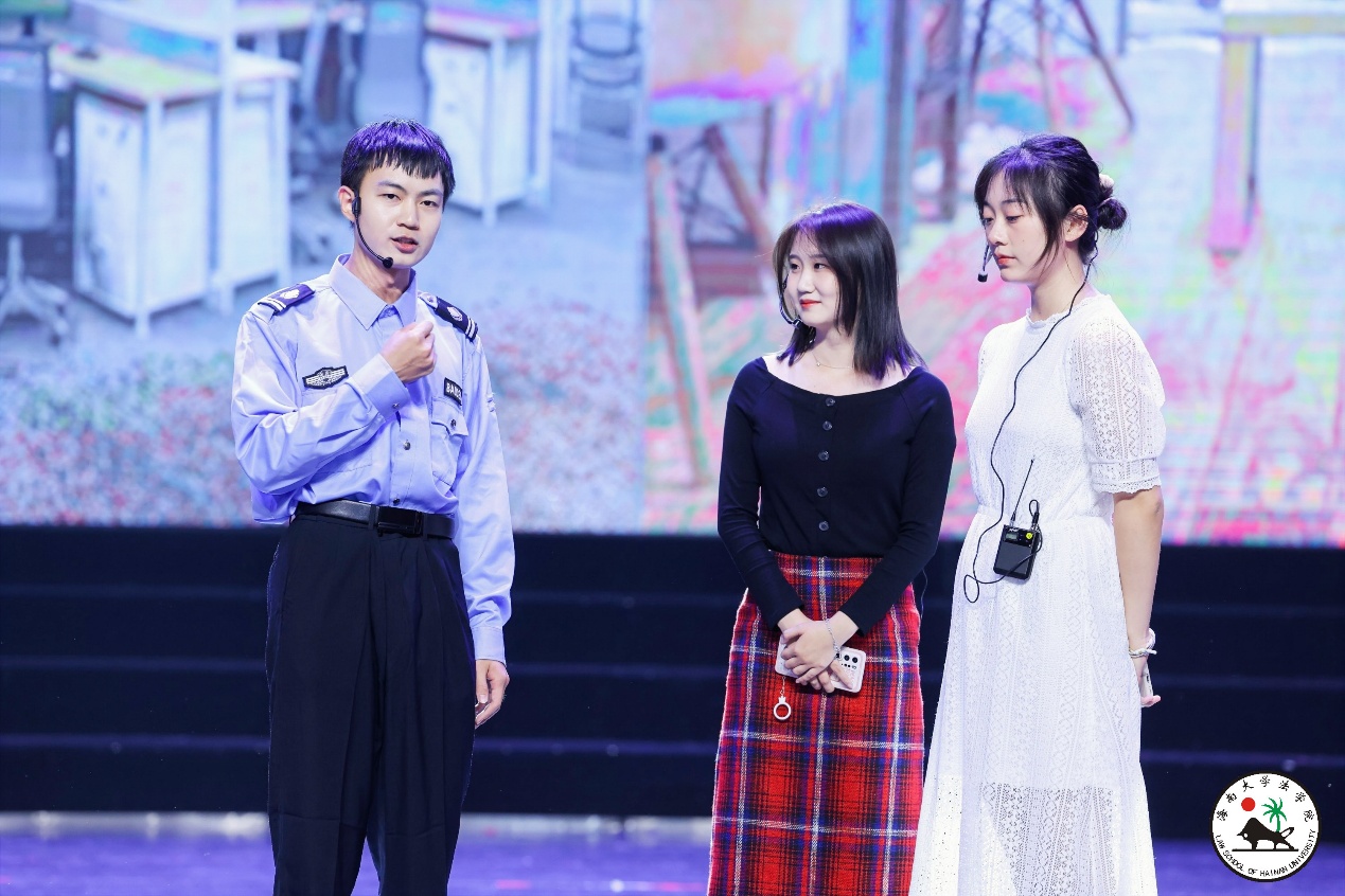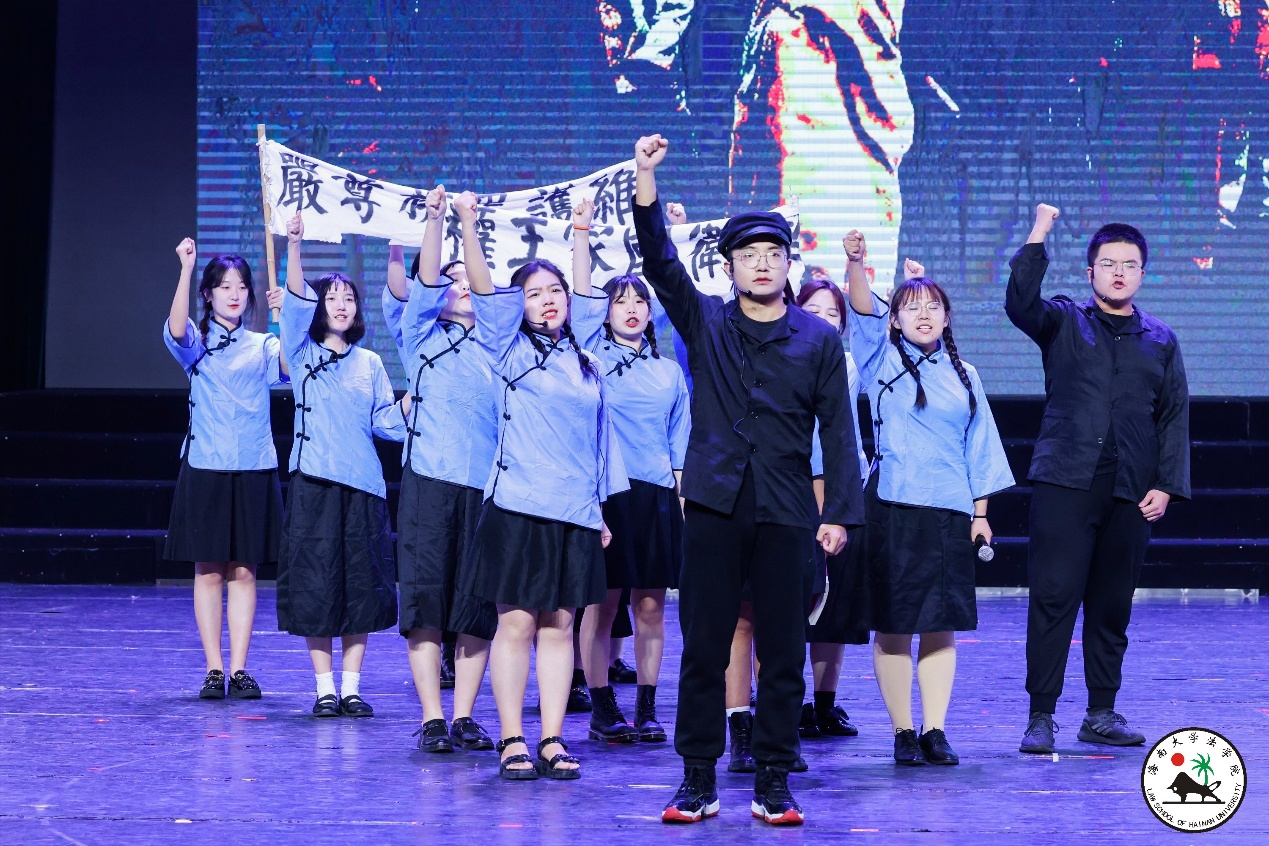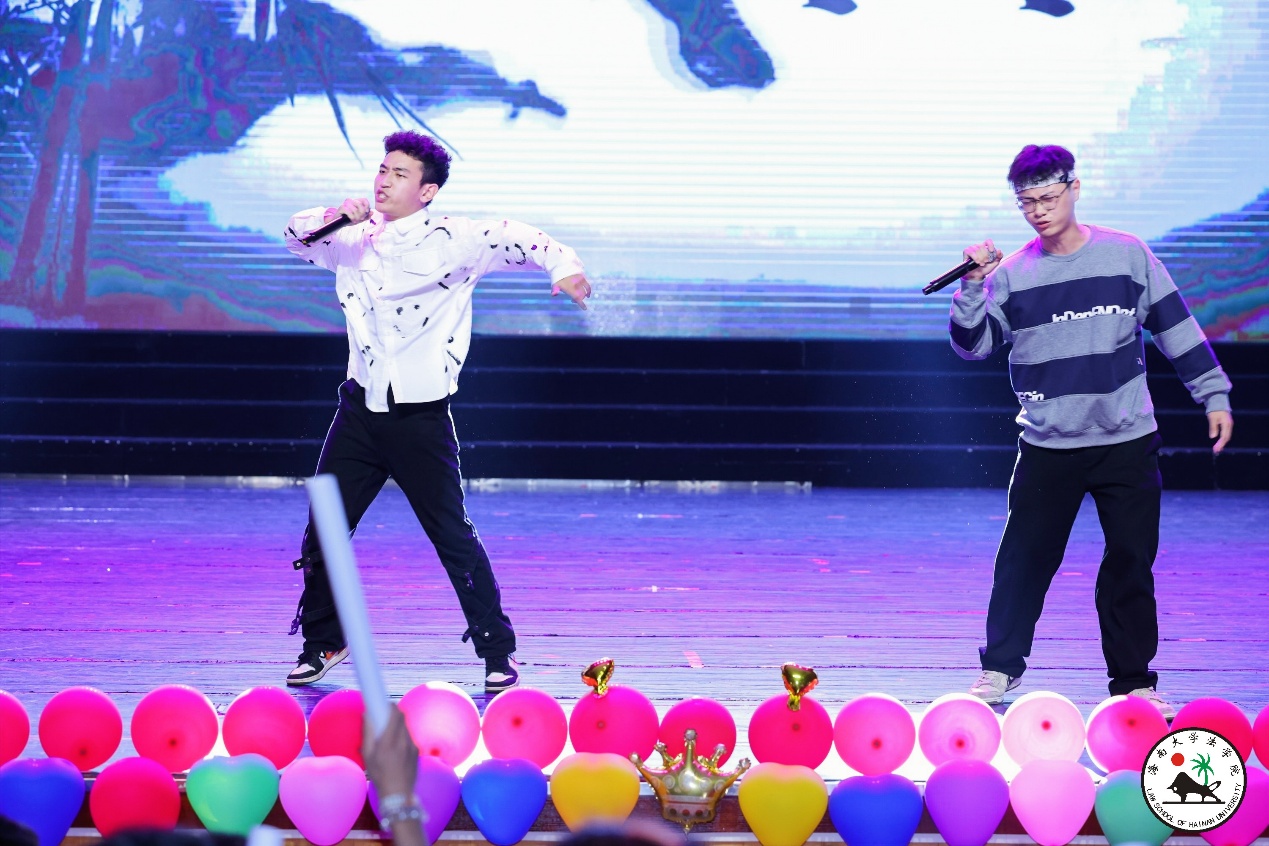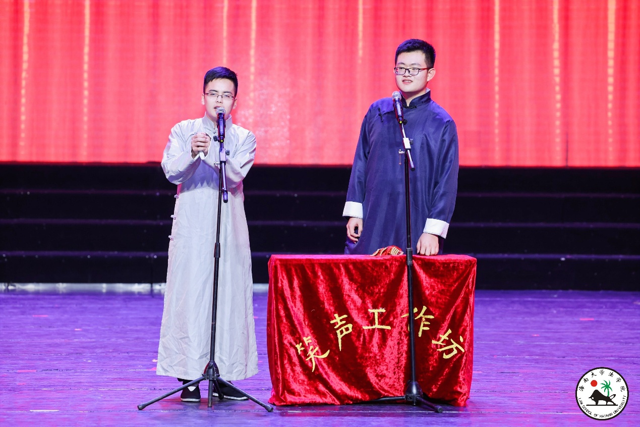 晚会分为上下两个篇章。由2019级法学1班马杰和2019级法学文科实验班舒赐雯为大家献上原创歌曲《霓虹派对》,充满活力的演唱让大家感受到了初恋中的怦然心动;太阳集团tyc539工会选送的教师节目《书简舞》让大家看到了老师们不只在三尺讲台显风采,在舞蹈中也是柔美四溢。2020级法学1班带来了防电信诈骗情景剧《郝单纯》,让大家在剧中感受到了电信欺诈手段的多样性,也给在场所有人提出了防诈小妙招;2020级法律(非法学)班的陈露一首轻快的俄罗斯小调《达尼亚》,让在场的观众都陶醉其中;一曲《大鱼海棠》,又把我们带回到最初的相遇;舞蹈串烧《触摸天空》让大家都感受到了年轻和活动,感受到了梦想和热爱。2019级本科生和2020级本科生的舞蹈《Cleopatra》动感十足、热情洋溢,将晚会又拉向了高潮;笑声工作访《今夜说相声》也引来现场笑声连连;由2020级法学3班带来的军装舞蹈《给青春理一个短头发》又激起了无数“红妆”女孩的军营梦想;由太阳集团tyc539员工党员联合会、2021级法律(法学)班出演的舞台剧《破晓》让大家身临其境,穿越时空感受到了青年的热血和勇气;由2019级法学1班“双马尾”马杰、陈刘炜带来的说唱歌曲《沧海一声笑》激情澎湃,将晚会又推向了一阵高潮,现场欢呼不断。
