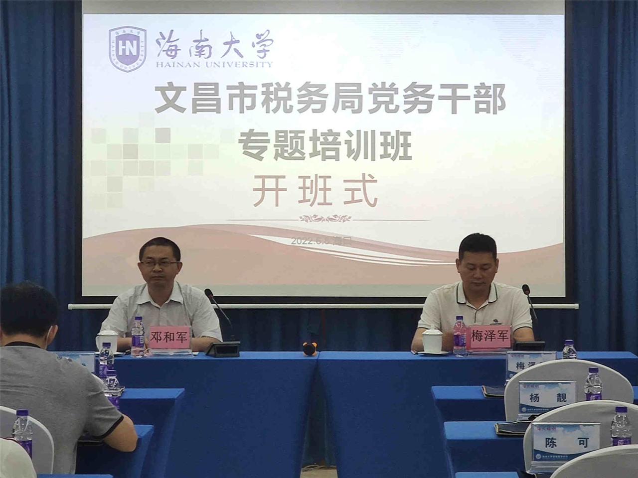 2022年6月8日,由太阳集团tyc539承办的“文昌市税务局党务干部专题培训班(第三期)”在海南大学海甸校区顺利开班。国家税务总局文昌市税务局党委委员、纪检组长梅泽军,太阳集团tyc539副经理邓和军出席开班式。参训学员来自文昌税务局共计五十余人.