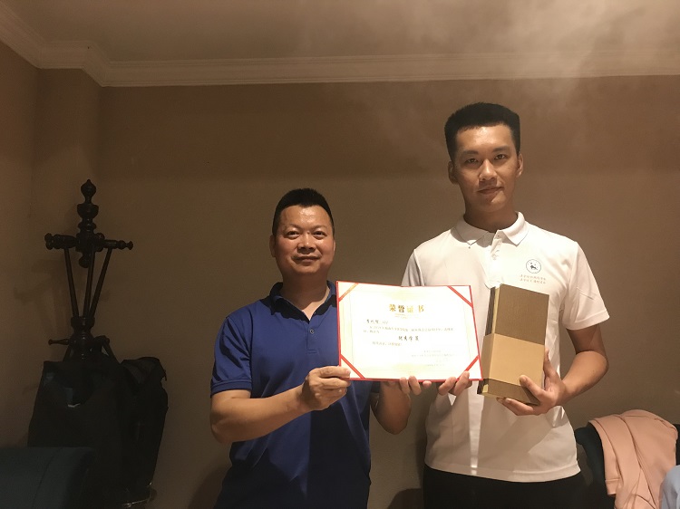 2017级本科生刘玉鸣与1999级黄长水员工合影