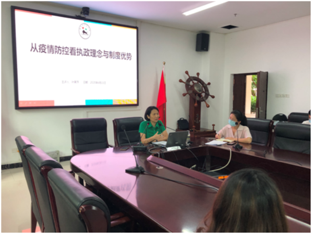 叶英萍书记以“从疫情防控看执政理念与制度优势”为主题,以中美疫情防控对比向员工们介绍了从1月底至今我国防疫工作取得的重大成效,中国共产党坚持党的群众路线,构建群防群治抵御疫情的人民防线,充分体现了我国此次防疫政策的及时性与准确性,同时更加体现了中国共产党领导、执政理念和社会主义制度的优越性。