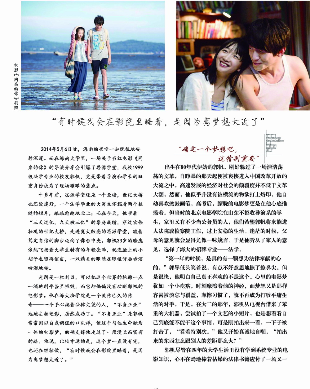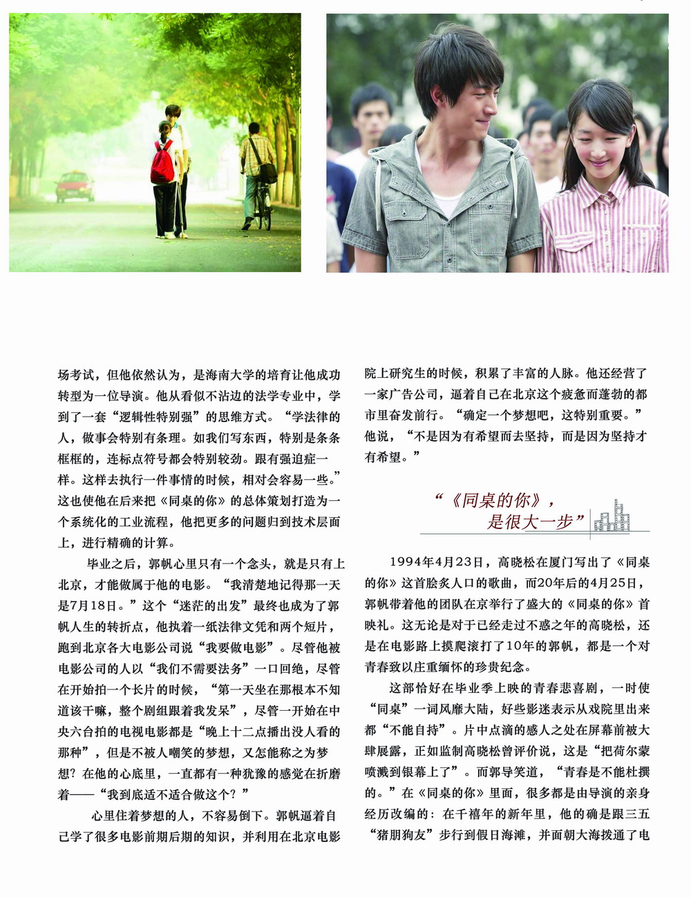 “不务正业者”郭帆----记1999级法学专业员工电影《同桌的你》导演郭帆