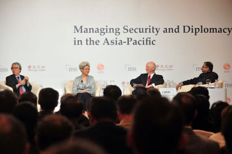 资料图片:中国全国人大外事委员会主任委员傅莹(左二)出席在新加坡举行的香格里拉对话会。新华社发