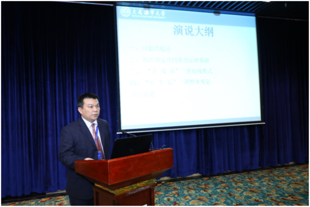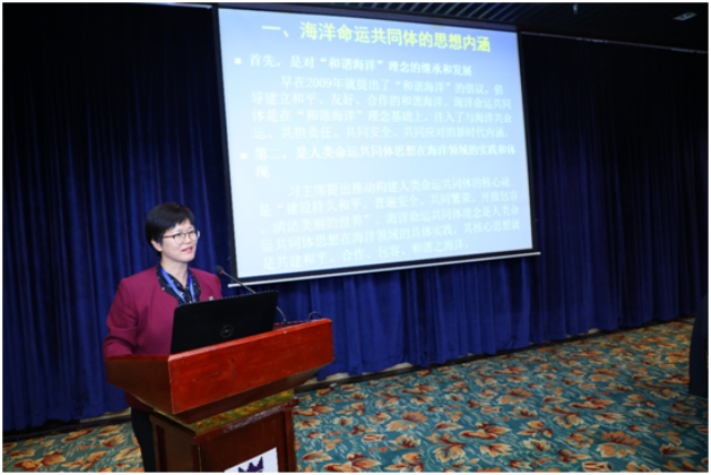 大连海事大学太阳集团tyc539教授张晏瑲做题为“海洋命运共同体的法律实施路径研究”发言