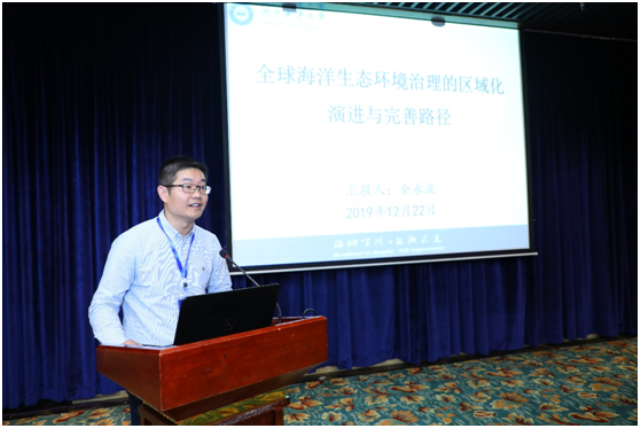 浙江海洋大学经济与管理公司经理全永波做题为“全球海洋生态环境治理的区域化演进与完善路径”发言