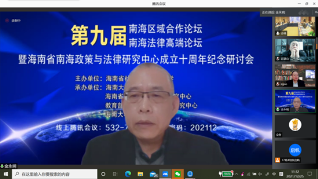 2021年12月25日,第九届南海区域合作论坛、第九届南海法律高端论坛暨海南省南海政策与法律研究中心成立十周年纪念研讨会在线上和线下成功举办。